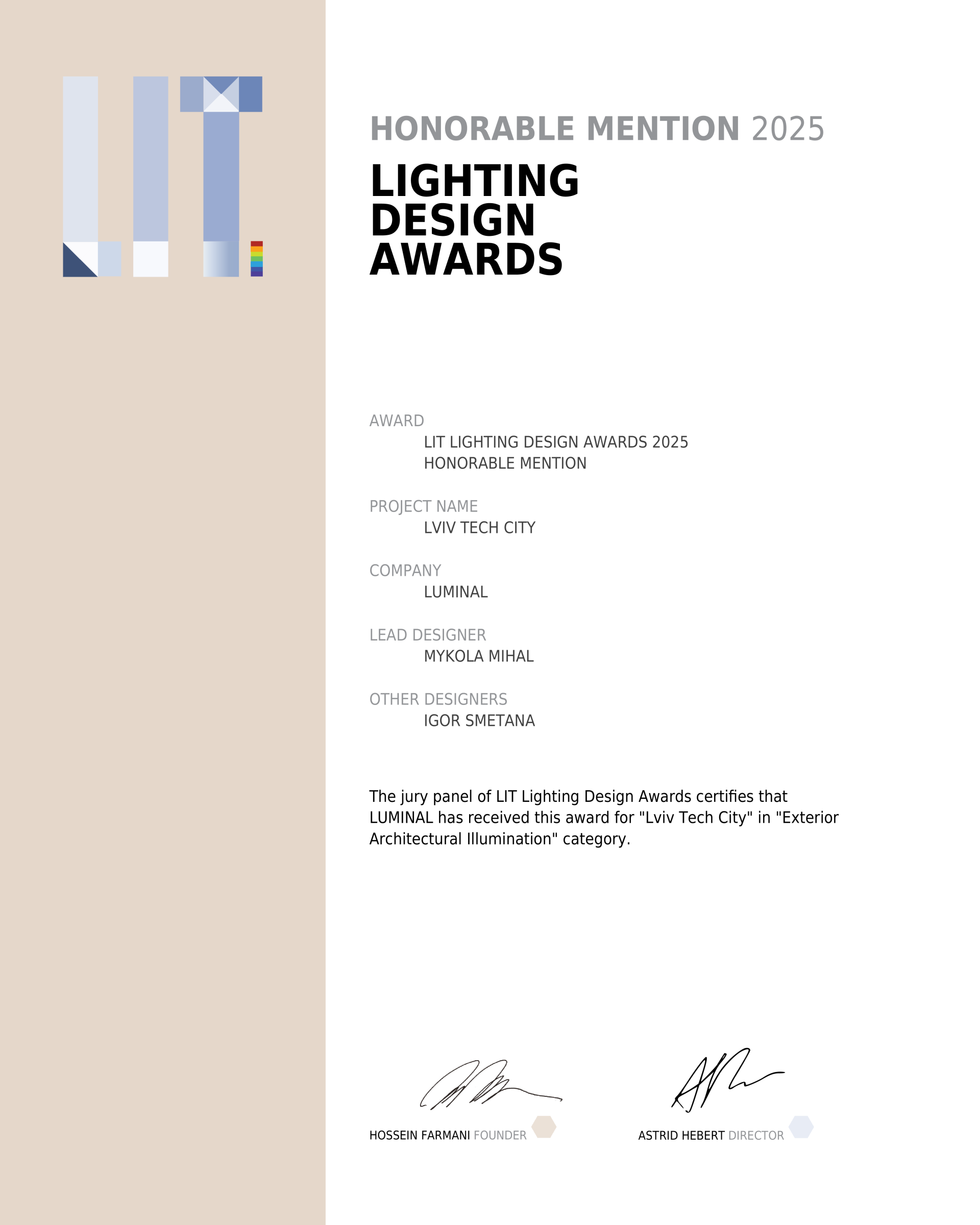 Почесна відзнака LIT "Lviv Tech city"