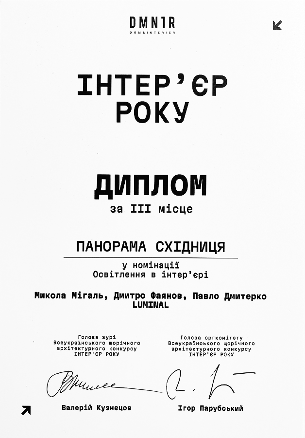3rd Place — Interior of the Year, “Panorama Skhidnytsia”